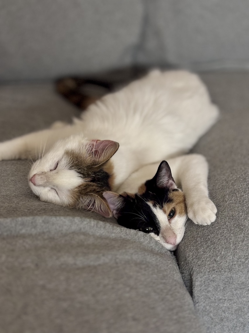 Sterker nog: toen de dierenarts hun vaccinaties gaf, lagen ze tevreden te spinnen alsof ze een wellnessbehandeling kregen. De dierenarts was meteen fan en wij eerlijk gezegd ook.