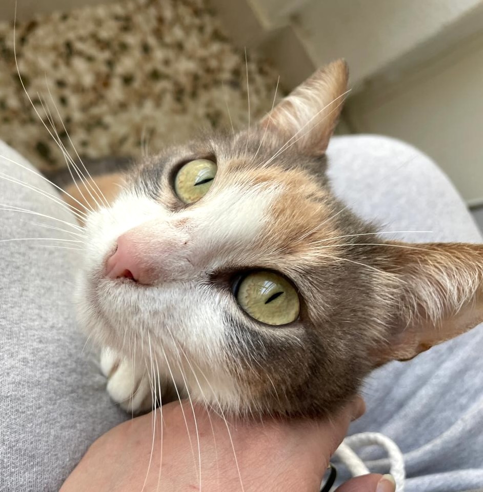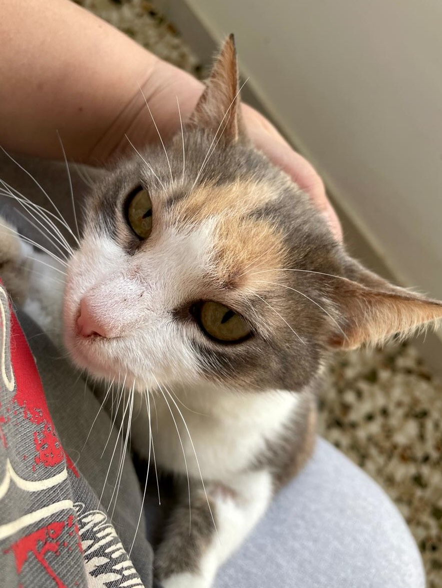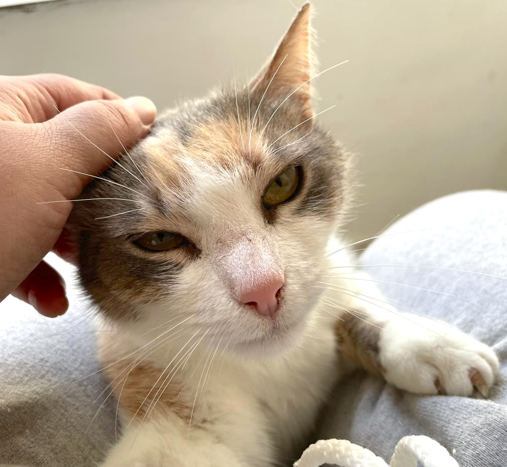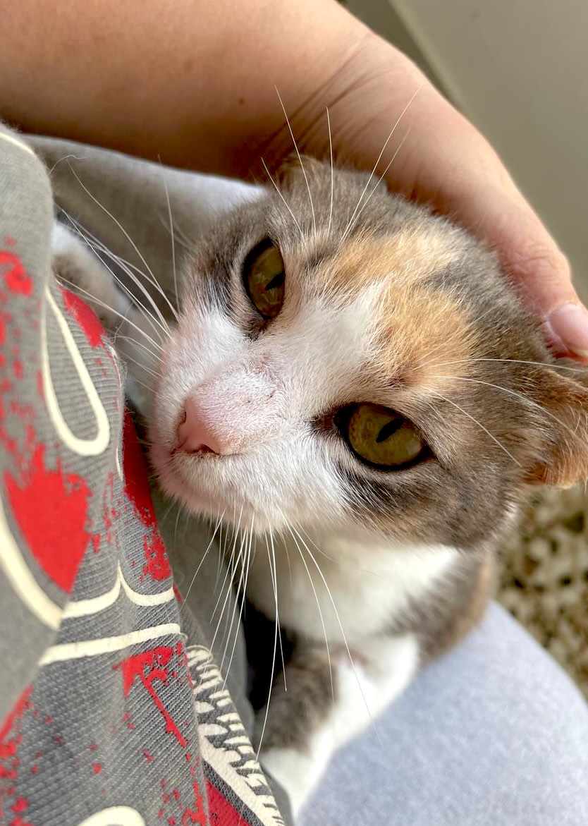 Je zou denken dat een kat het vertrouwen in de mensheid heeft verloren. Maar niet Bunny, zij blijft dol op mensen. Ze volgt haar verzorger overal en wacht geduldig tot ze gaat zitten, zodat ze op schoot kan klimmen en knuffelen. Ze is een van de liefste katten die je je maar kunt voorstellen en heel makkelijk in de omgang. Bizar toch, dat een kat zo lief is na alle ellende die haar is aangedaan?!