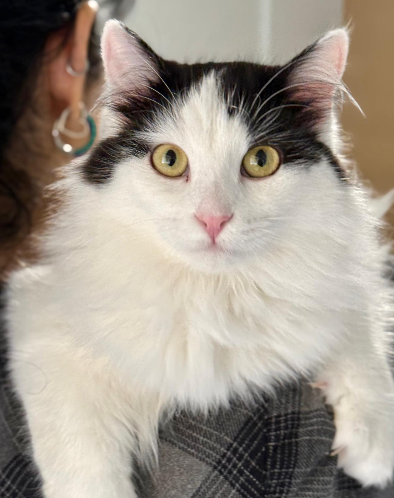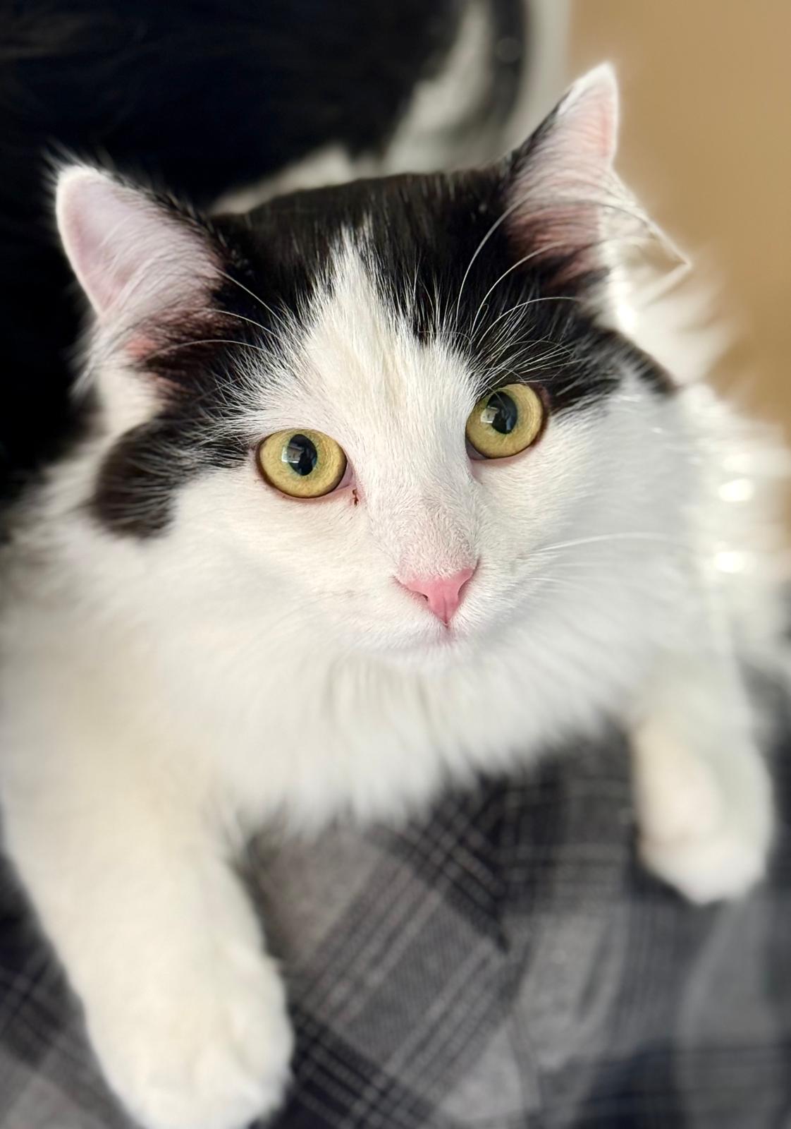 De zwart-witte poes Molly heeft een langharige vacht met een volle pluimstaart. Haar zusje Dolly straalt met haar glanzend zwarte vacht pure elegantie uit. Samen vormen ze een beeldschoon duo. Ze zijn qua karakter én kleur perfect op elkaar afgestemd.