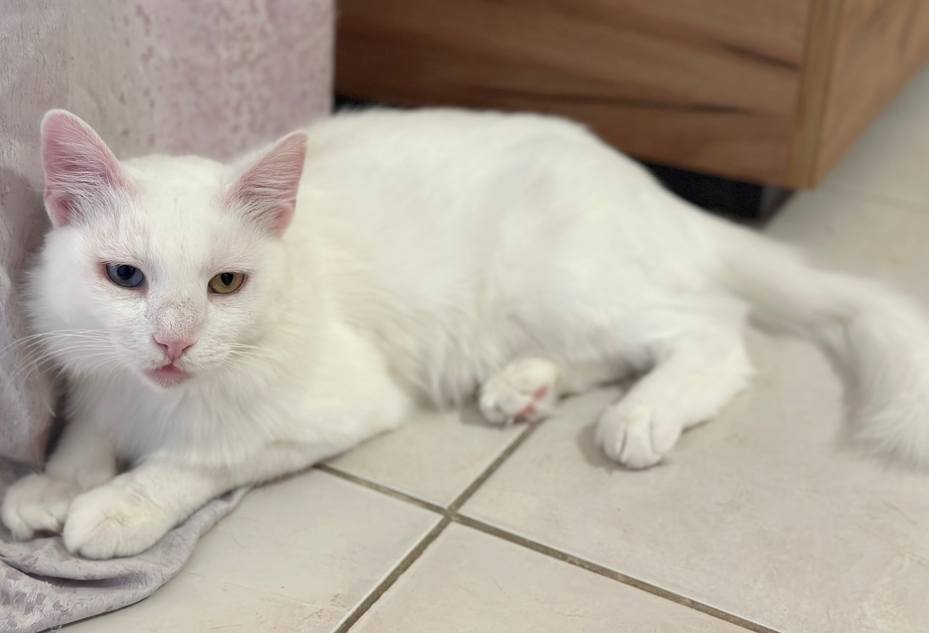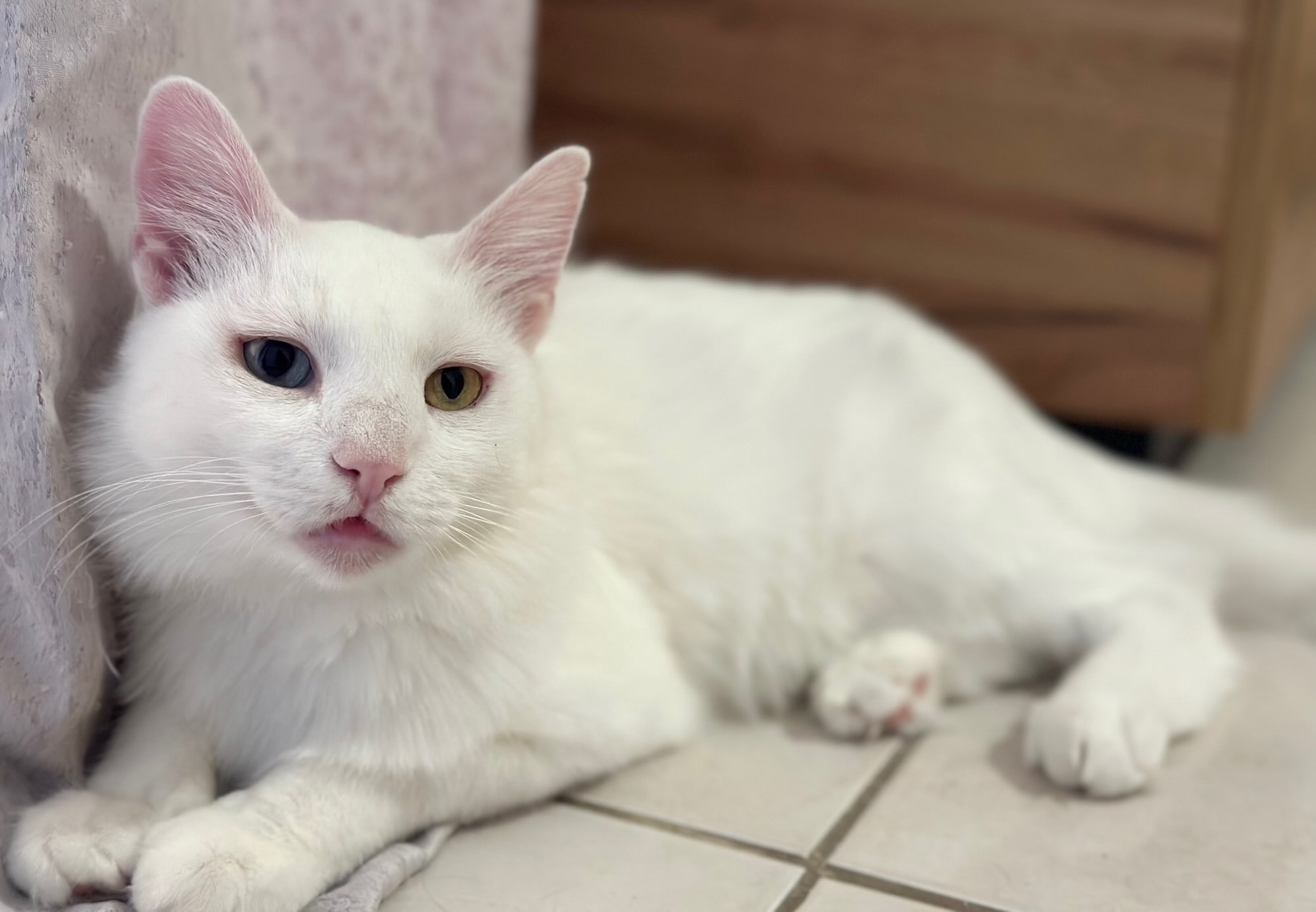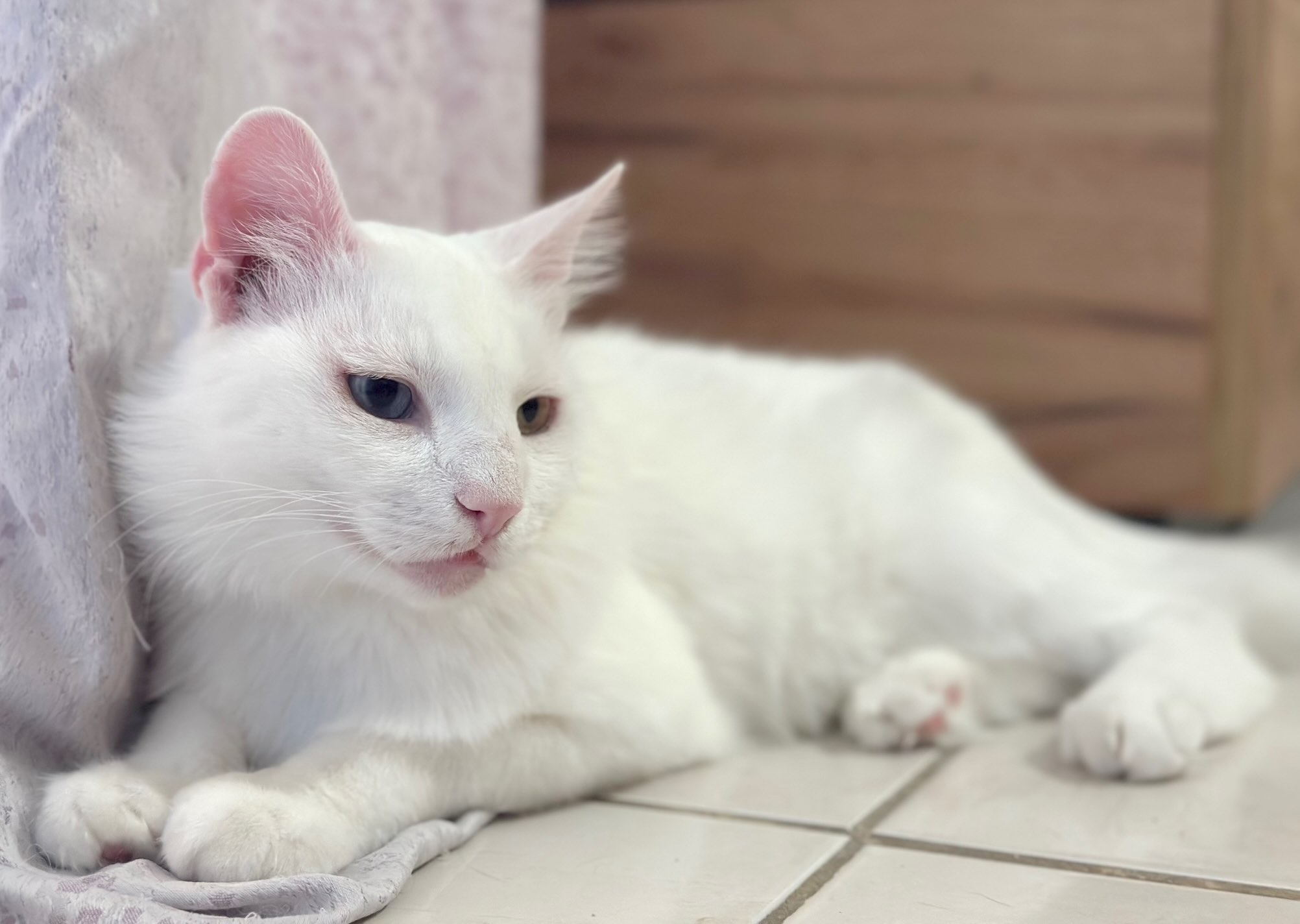 Kattenkenners weten dat witte katten vaak doof zijn, maar daar heeft deze prachtige dame geen last van.
