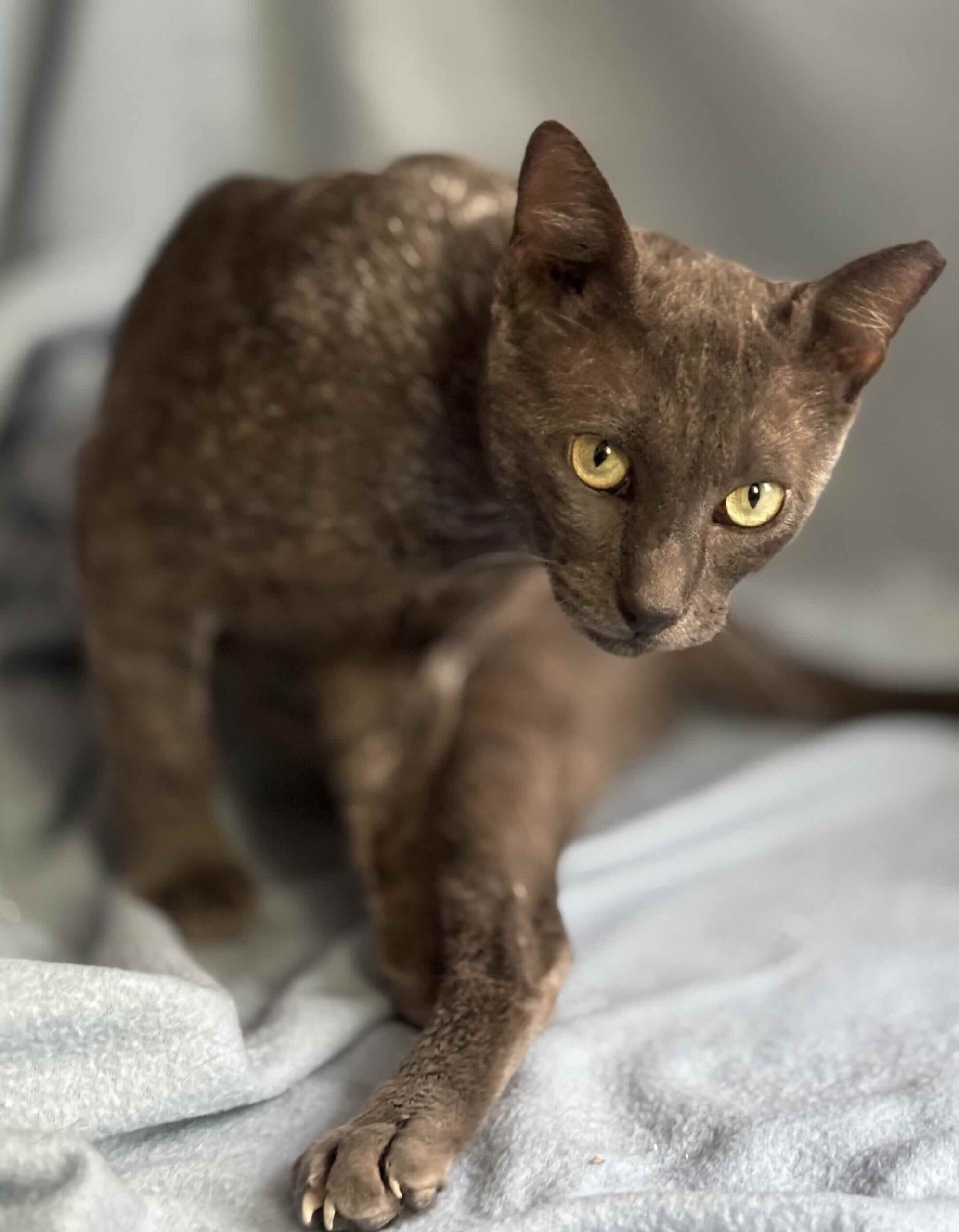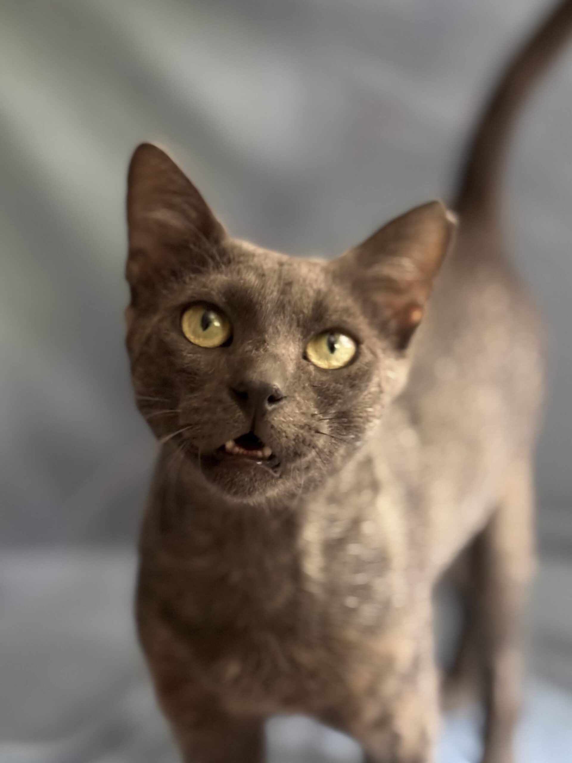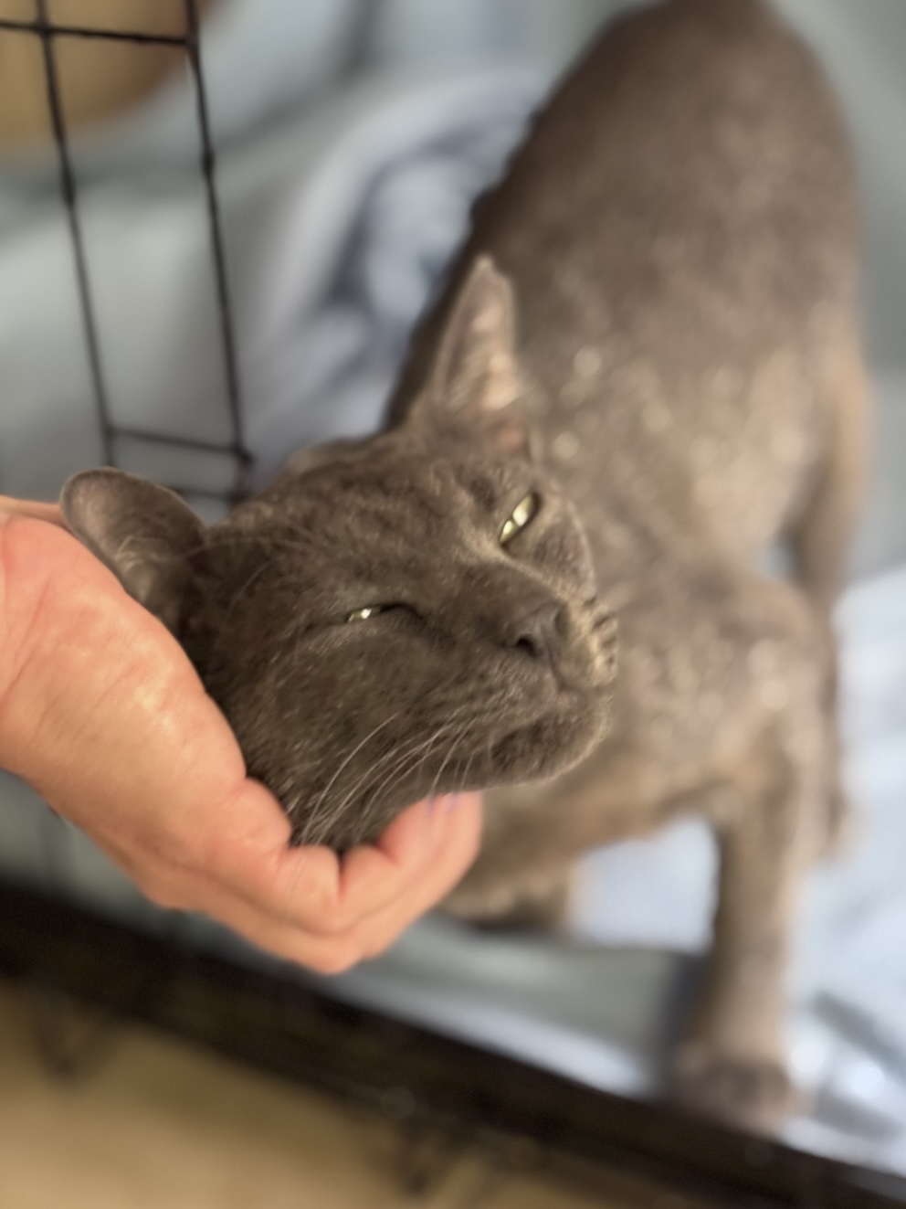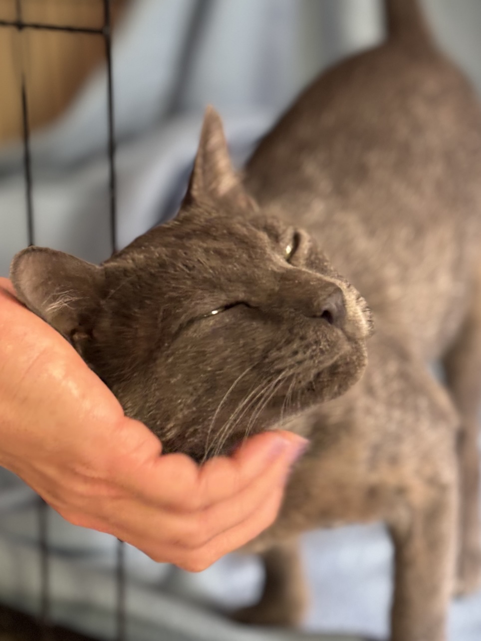 Grey werd in vreselijke toestand gevonden, meer dood dan levend. Hij had kattenniesziekte, maar de onverschilligheid van mensen die hem zagen en hem niet naar de dierenarts brachten, zorgde ervoor dat hij bijna is gestorven. Een van onze rescuers heeft hem opgevangen zodat hij kon herstellen, en daarbij ontdekte ze dat hij een ontzettend aanhankelijke kat is.