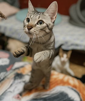 - Kan met andere katten: ja, hij heeft een speelmaatje nodig