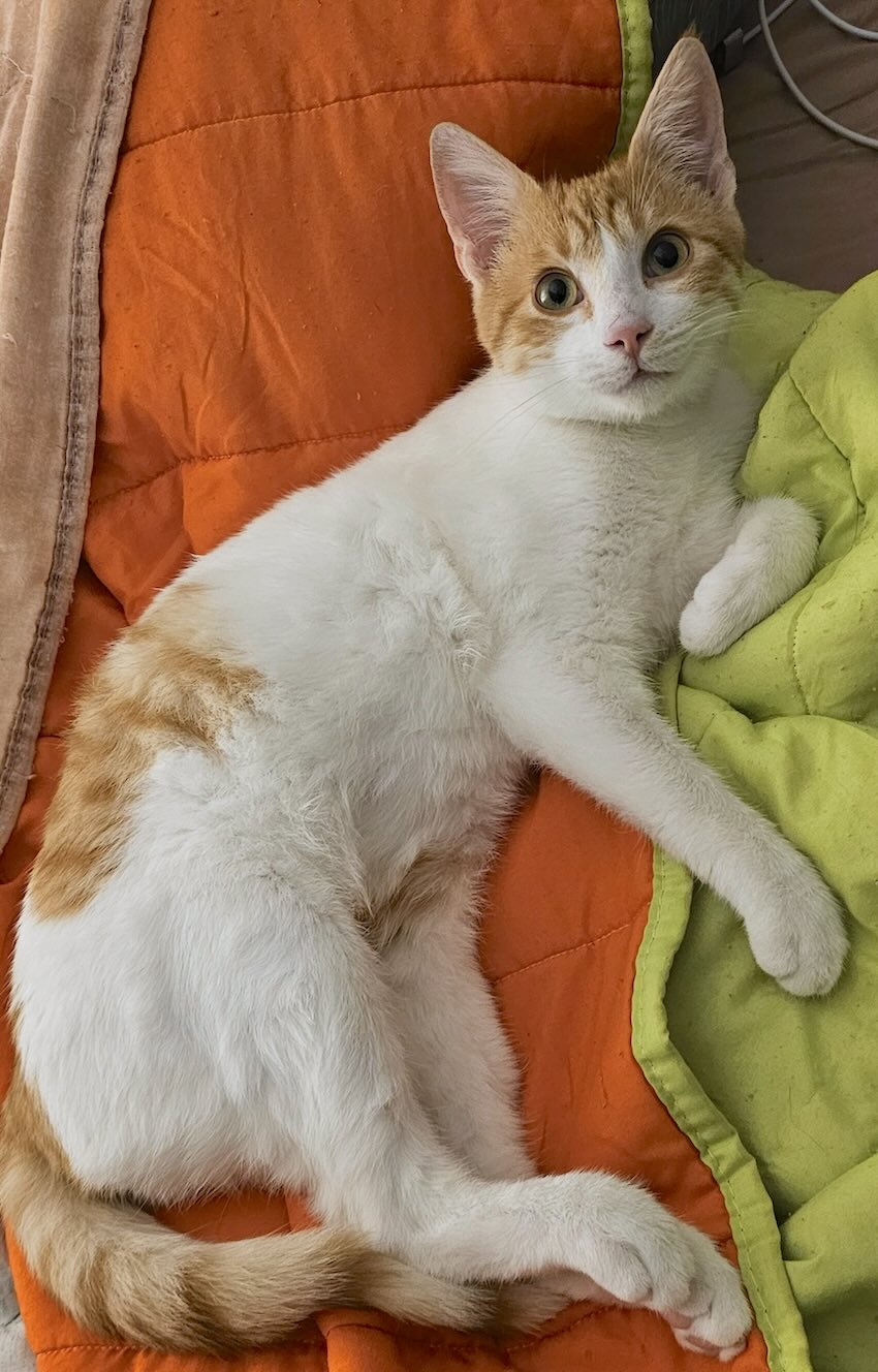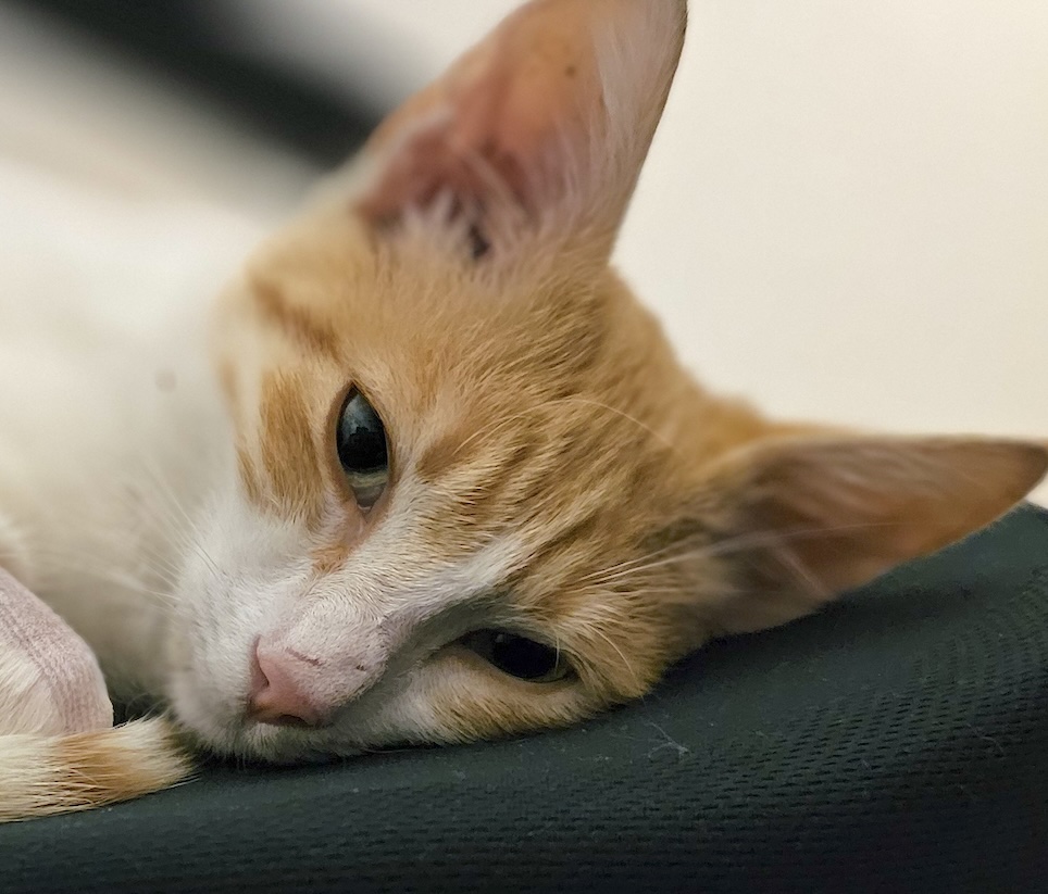 Op een regenachtige dag zwierf dit dappere katertje door de straten. Toen hij een geparkeerde auto zag met het raam open, sprong hij er meteen in om aan de regen te ontsnappen. De bestuurder was even een koffie aan het halen en kwam Lemmy als cadeautje in de auto tegen. Het was alsof het zo moest zijn: een doorweekte kitten op zoek naar beschutting vond zijn ticket naar een warme opvang en hopelijk snel naar zijn forever home.