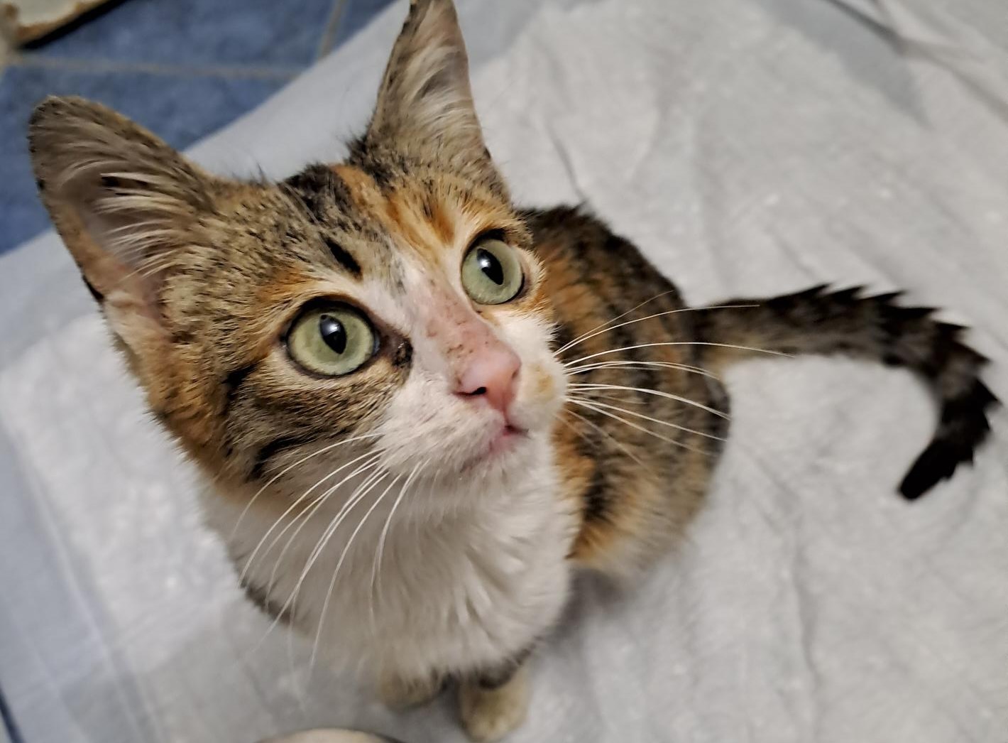 Lina werd gevonden toen ze ongeveer drie maanden oud was. Ze had toen last van een verkoudheid en traanoogjes, maar daar is ze inmiddels goed van hersteld.