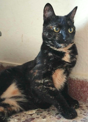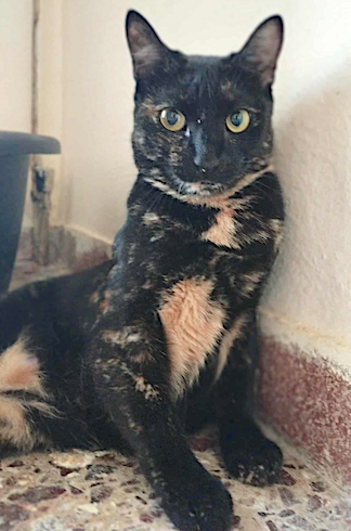 Maisa is een prachtige schildpadkat die onder een auto werd gevonden. Ze was doodsbang en was letterlijk aan het gillen van angst. Toen ze onze rescuer zag rende ze op haar af, begon met haar pootjes te kneden en zelfs te kwispelen met haar staart. Ze heeft nog steeds een heel erg zoet karakter.