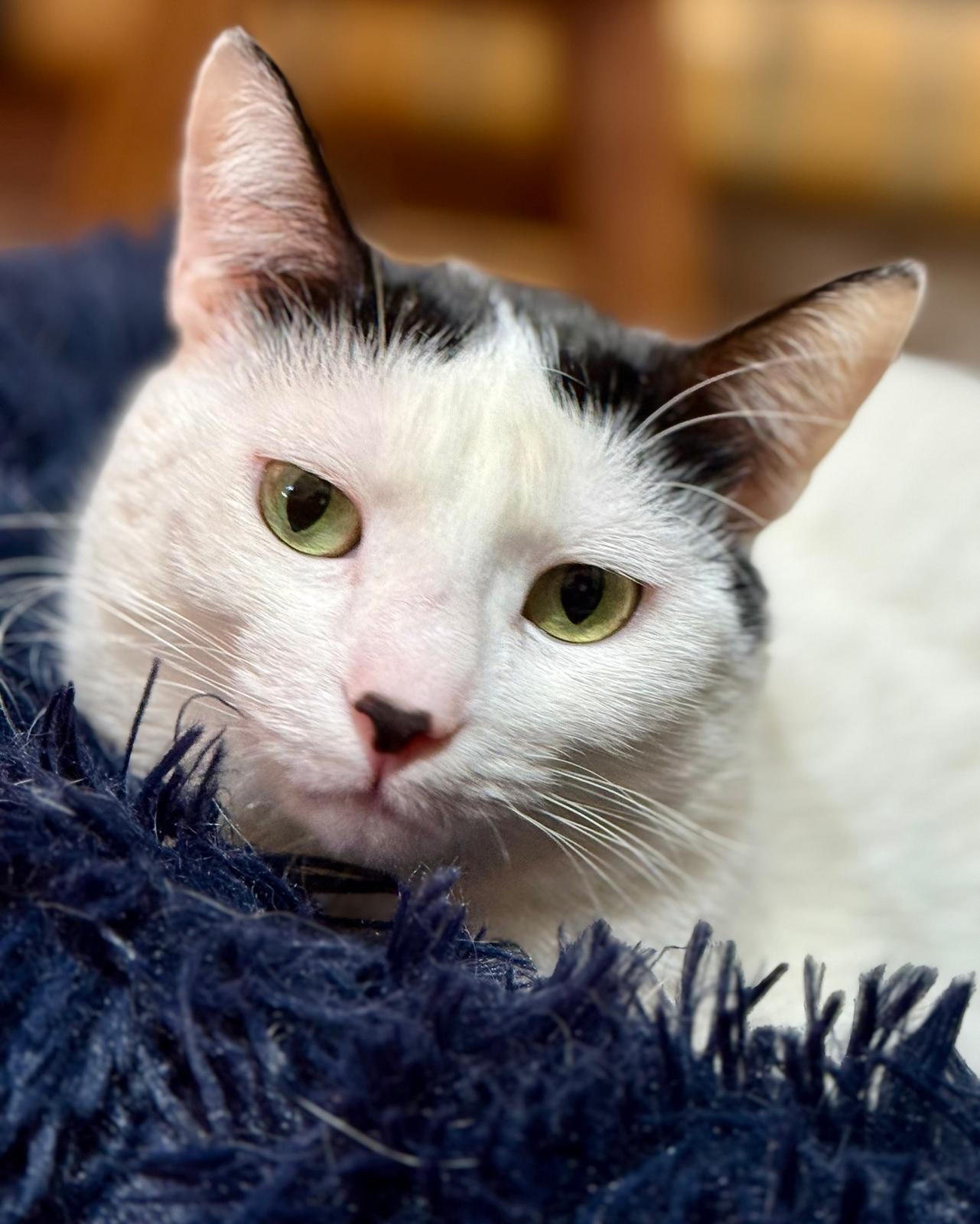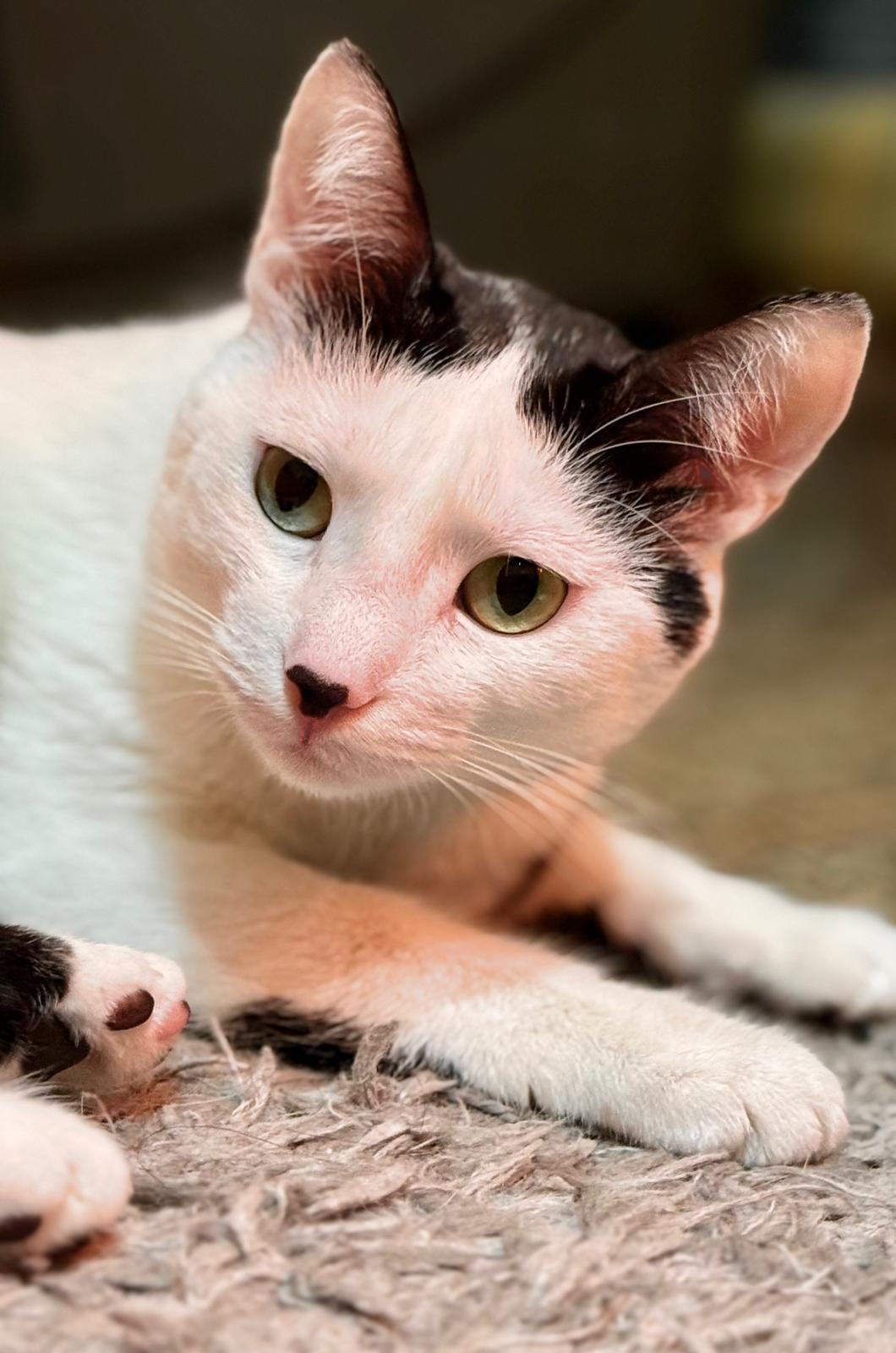 Deze wit met zwarte beauty werd gered uit de motor van een auto bij het huis van haar tijdelijke verzorger. Hoe ze daar terechtkwam? Dat is een mysterie waar alleen Martha het antwoord op weet. Maar ƩƩn ding is duidelijk: deze dame heeft negen levens en weet precies hoe ze die moet gebruiken.