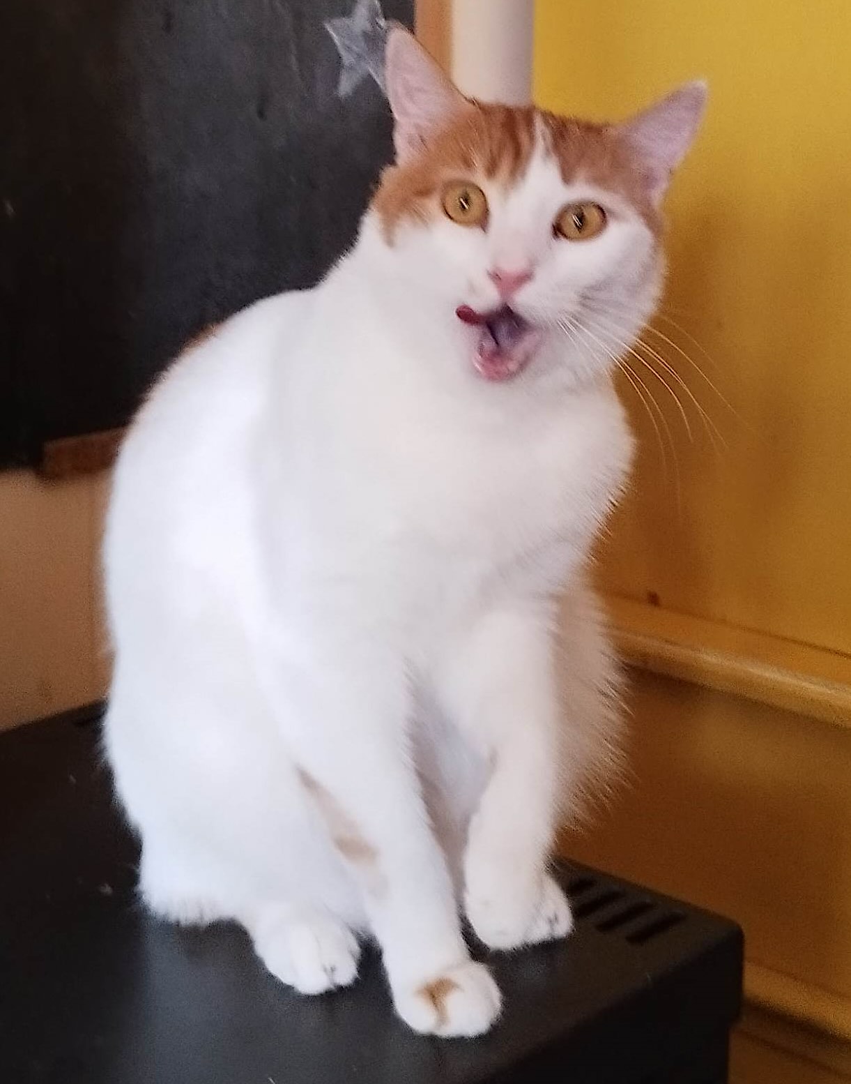 Maar … ze maakt wel graag contact met haar tijdelijke baasje en vindt het fijn om geaaid te worden. Vaak vraagt ze er zelfs om. Haar verzorger praat veel tegen Moonpie en het is ontzettend lief hoe ze probeert terug te “praten”. Ook al is ze lief, ze blijft wel een verlegen kat, vooral tegenover onbekenden.