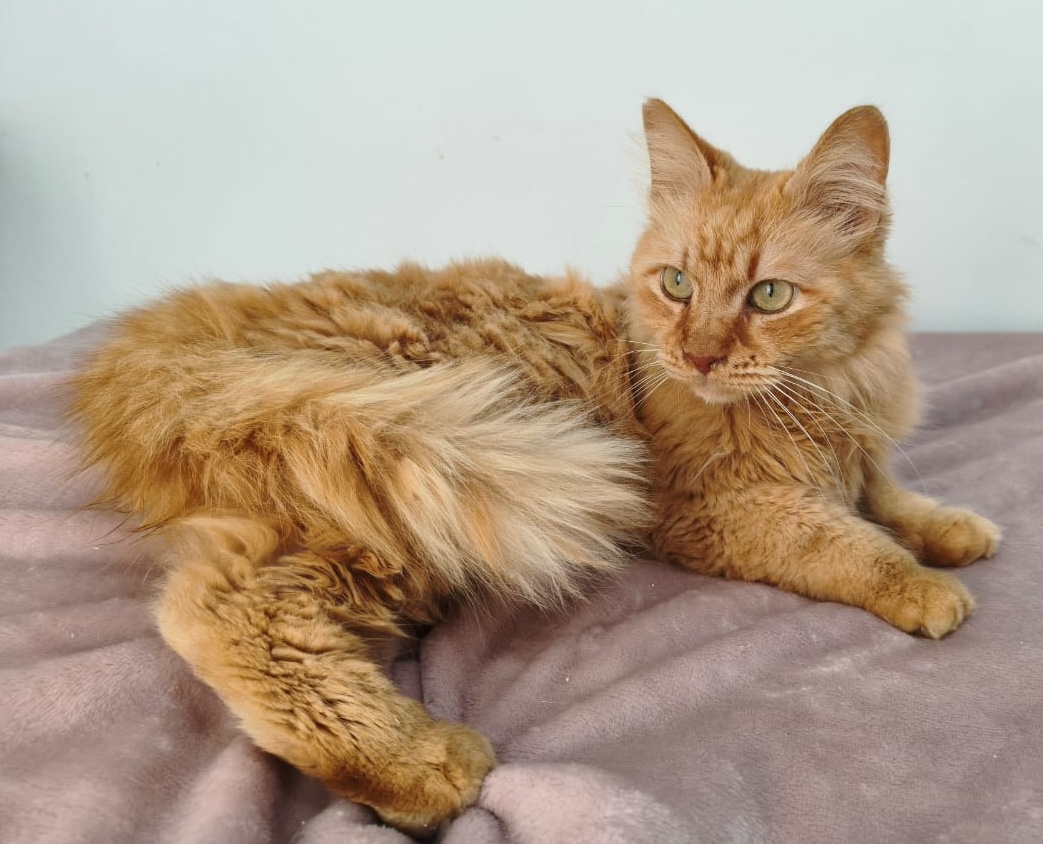 Ruby is een ongelooflijk mooie kat met haar prachtige roodkleurige, halflangharige vacht en indrukwekkend pluizige staart. Ze is gek op mensen en heeft een heerlijk relaxed karakter.
